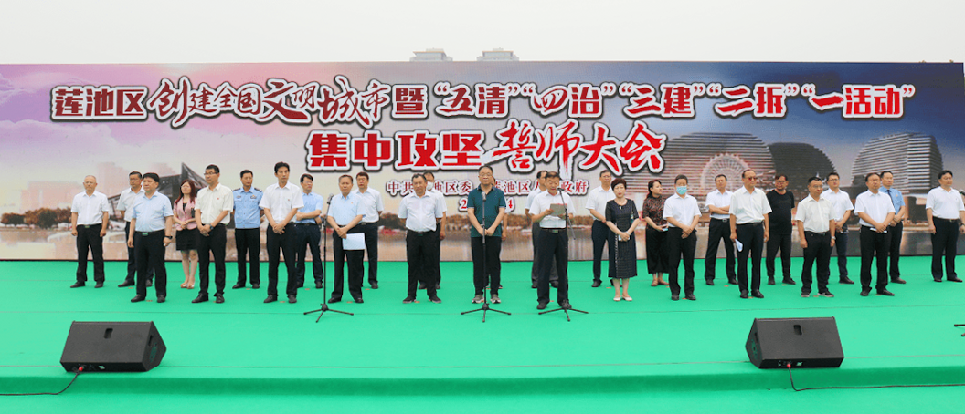 会议由区委副书记、区长、区创城工作指挥部指挥长刘晓鹏主持;区委党委、宣传部长、区创城工作指挥部副指挥长兼创城办主任罗晓瑞向参会人员简要通报了莲池区创城工作进展情况并对下一步工作进行了安排;区委副书记、区创城工作指挥部常务副指挥长高国华宣读了《保定市莲池区开展“五清”“四治”“三建”“两拆”“一活动”集中攻坚行动 推动“三整治五提升”文明城市创建实施方案》;区委书记、区创城工作指挥部政委董鸣镝介绍了我市目前创城工作的开展情况,对本次行动要求作了具体阐述,并提出了更高的要求,希望全区上下团结一心,进一步弘扬“三有四干”的莲池精神和“彻夜鏖战、日夜兼程、晨起而作、只争朝夕”的莲池作风,共同为我市创建全国文明城市工作贡献力量。