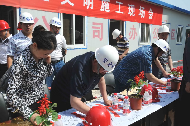 2010年6月4日,张家口住建局在我集团六公司承建的张家口亲河苑小区项目部召开了建筑施工安全文明施工现场会,张家口市住建局局长李义、安监站站长张芝祥及各区县住建局、安监站负责人,施工、监理单位负责人共72个单位220余人出席了会议,并在我集团安全百日赛的宣传条幅上了签字。