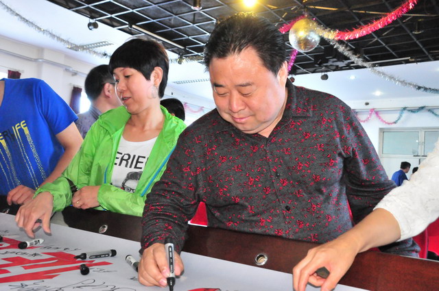 参会人员在“强化红线意识,促进安全发展,落实安全规章”条幅上签字。