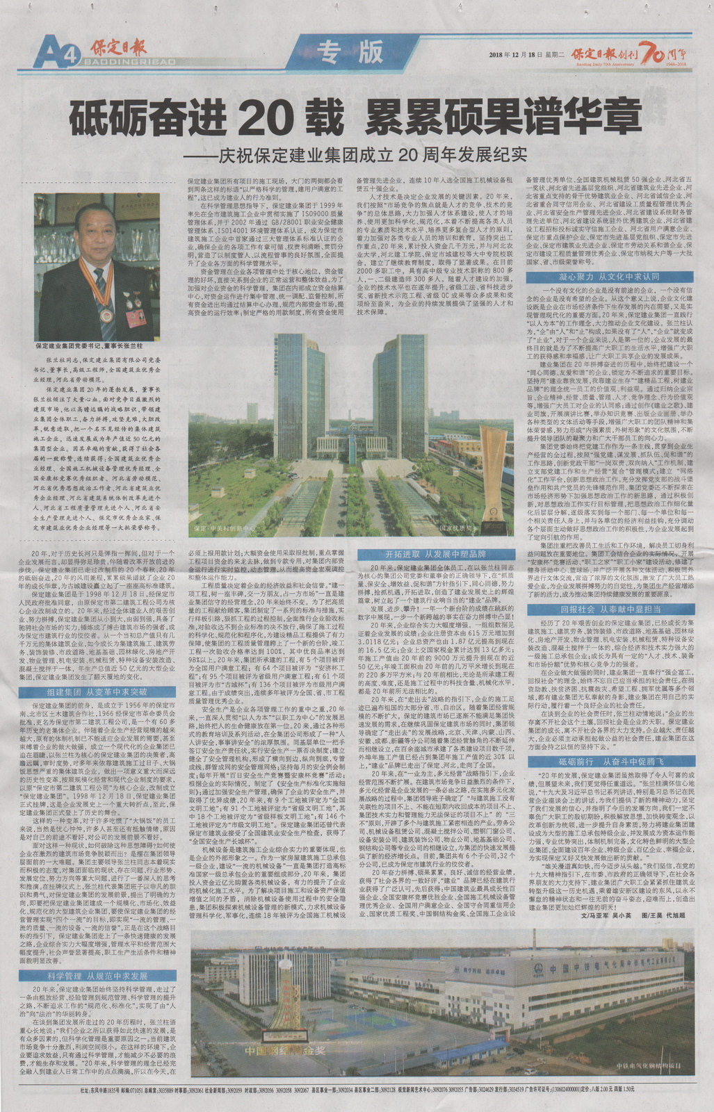 保定日报专版报道U8(中国)成立二十周年